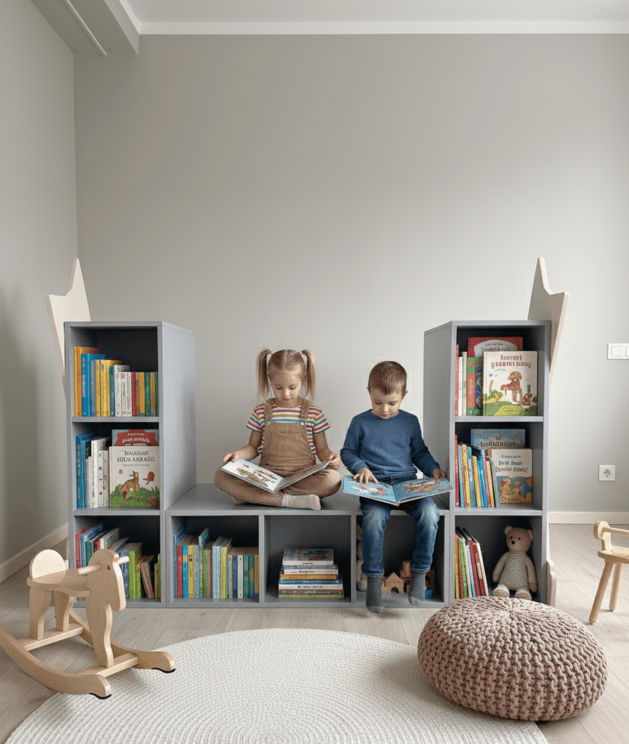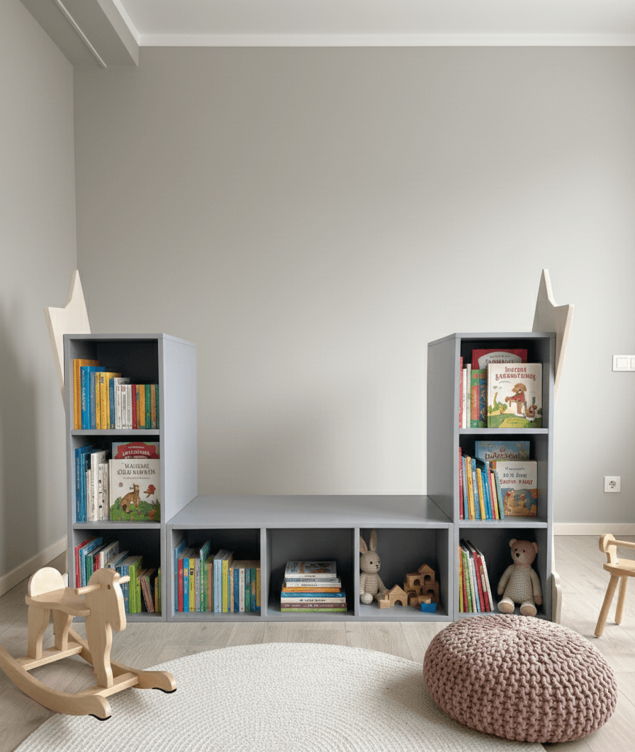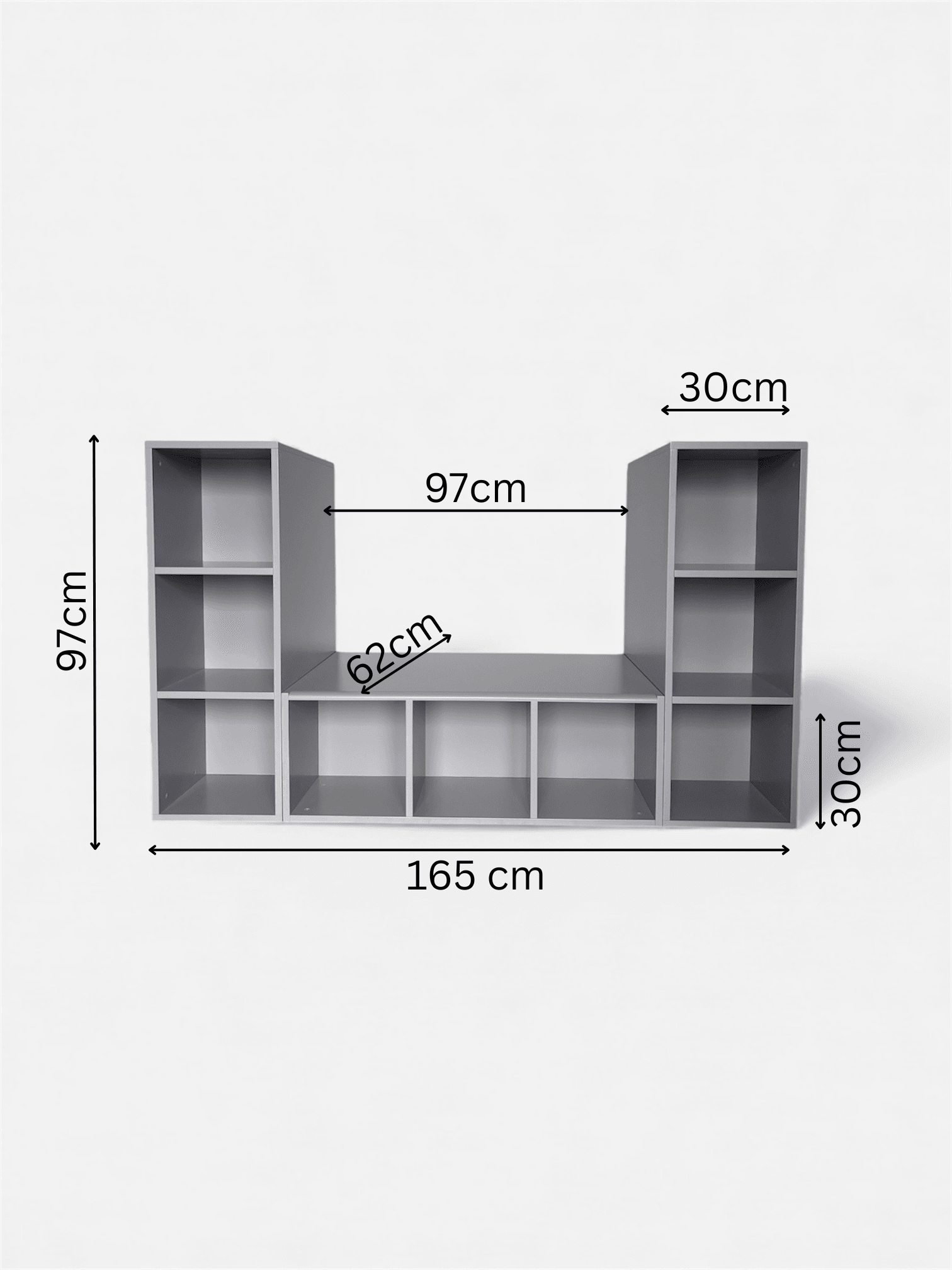 Atraskite universalų ir funkcionalų vaikų lentynos modulį, sukurtą tam, kad jūsų vaiko kambarys būtų ir estetiškas, ir patogus. Šis baldas – puikus pasirinkimas tiek mažoms, tiek didelėms erdvėms, nes lentynos yra iš abiejų pusių, todėl jis idealiai tinka kambario zonavimui, žaidimų erdvių atskyrimui ar funkcionaliam žaislų ir knygų laikymui.